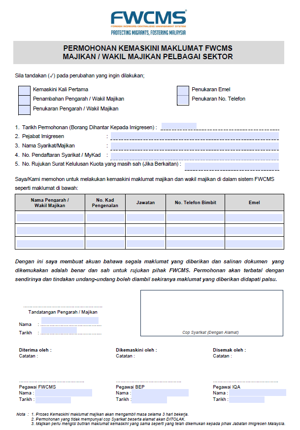 Borang Kemaskini Maklumat Majikan – Pelbagai Sektor