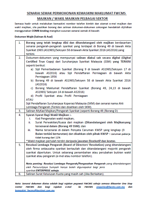 Senarai Semak Kemaskini Maklumat Majikan – Pelbagai Sektor